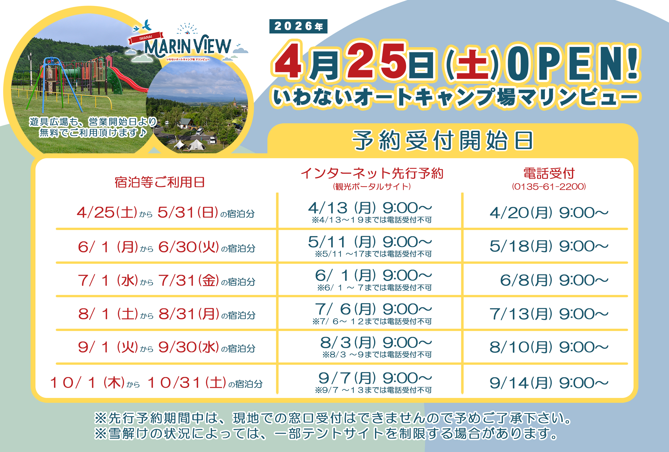 2026年4月25日(土)~10月31日(土)宿泊分まで。